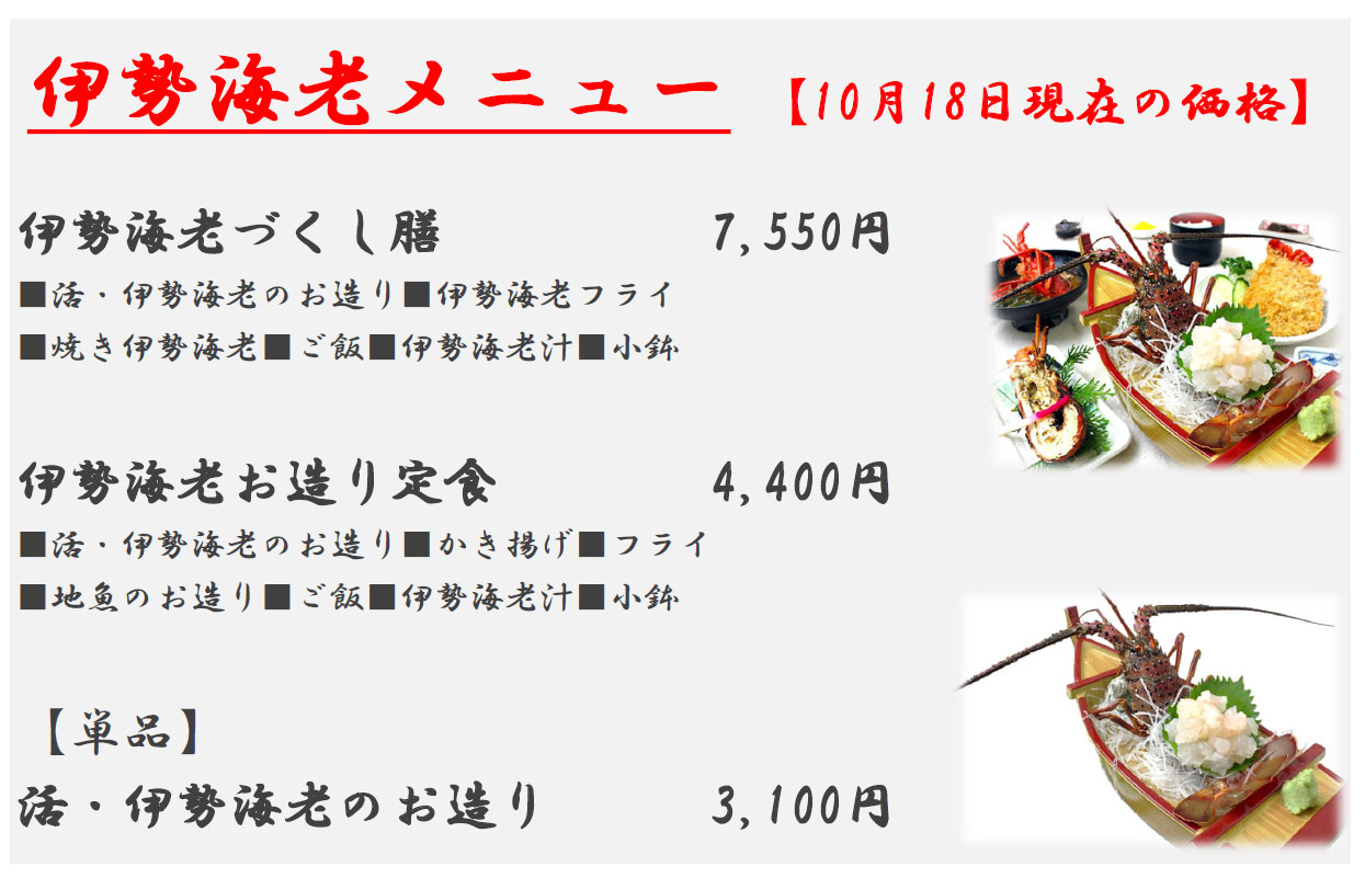 伊勢海老漁の解禁!旬の伊勢海老メニュー登場!