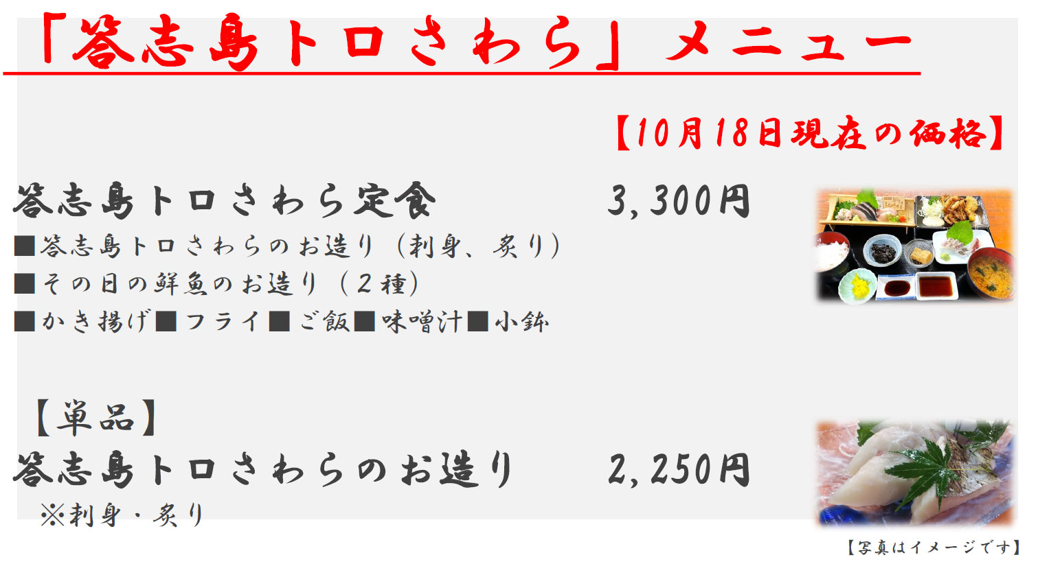 答志島トロさわら9月4日シーズンスタート!答志島トロさわらメニュー登場!